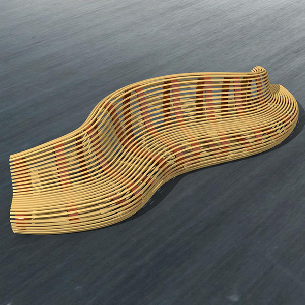 Various parameters needed to be adjustable, such as the number of vertical ribs and horizontal slats, as well as the width and thickness of these components. Desired outputs included the 3D model of the bench (for rendering), as well as labelled profile curves of the bench ribs, for laser cutting.