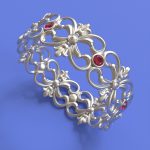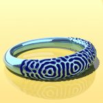 By adjusting the input parameters of the sine curve (e.g. amplitude, frequency, and shift), one can easily adjust the shape of the ring, changing the ring size, the number of peaks or “blobs”, and the width and height of the ring at various points. Embellishments can then be added, along or across the ring shank, to create an interesting and unique ring form.