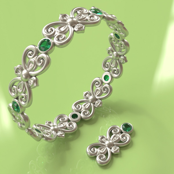 Scrollwork and gemstones form a repeating unit. A parametric script then repeats this unit to create a closed bracelet